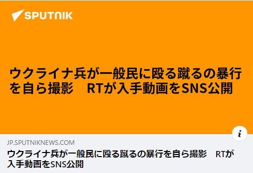 「ロシア側の主張」 記事内容はこちら ウクライナネオナチの私設軍団ボツマンボーイズが、4月2日ロシア軍撤退後のブチャにやって来て、「青い腕章付けてない奴は撃っていいんだよな?」と話している動画をTwitterに投稿している。 ブチャでの民間人殺害が... -